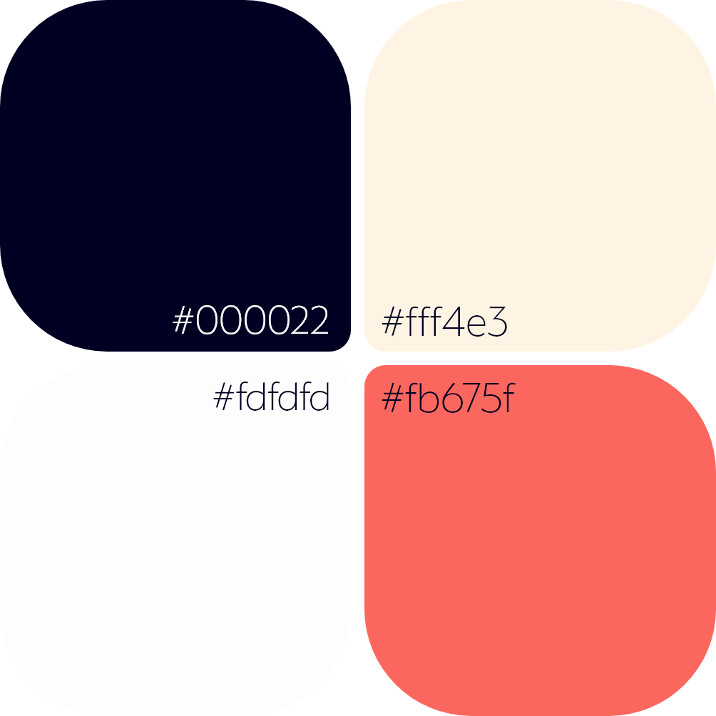 Aber zurück zu unserer Farbwahl. Nachdem wir unsere Primärfarbe gewählt haben, suchen wir noch zwei weitere Farben aus. Diese sollten sich von der zuvor gewählten Primärfarbe abgrenzen. Unsere neu gewählten Farben werden dann für den Hintergrund und verschiedene Elemente verwendet. Die Primärfarbe dient dann dazu, bestimmte Elemente besonders herauszustellen, aber dazu später mehr. Für die Auswahl können auch Tools verwendet werden, die zufällige Farben generieren oder passende Farben vorschlagen. Colorsinspo ist zum Beispiel praktisch, um sich zu Beginn inspirieren zu lassen. Als letztes wählen wir noch eine Textfarbe. Haben Sie zuvor eher dunkle Farben gewählt, sollte die Textfarbe hell sein und umgekehrt.