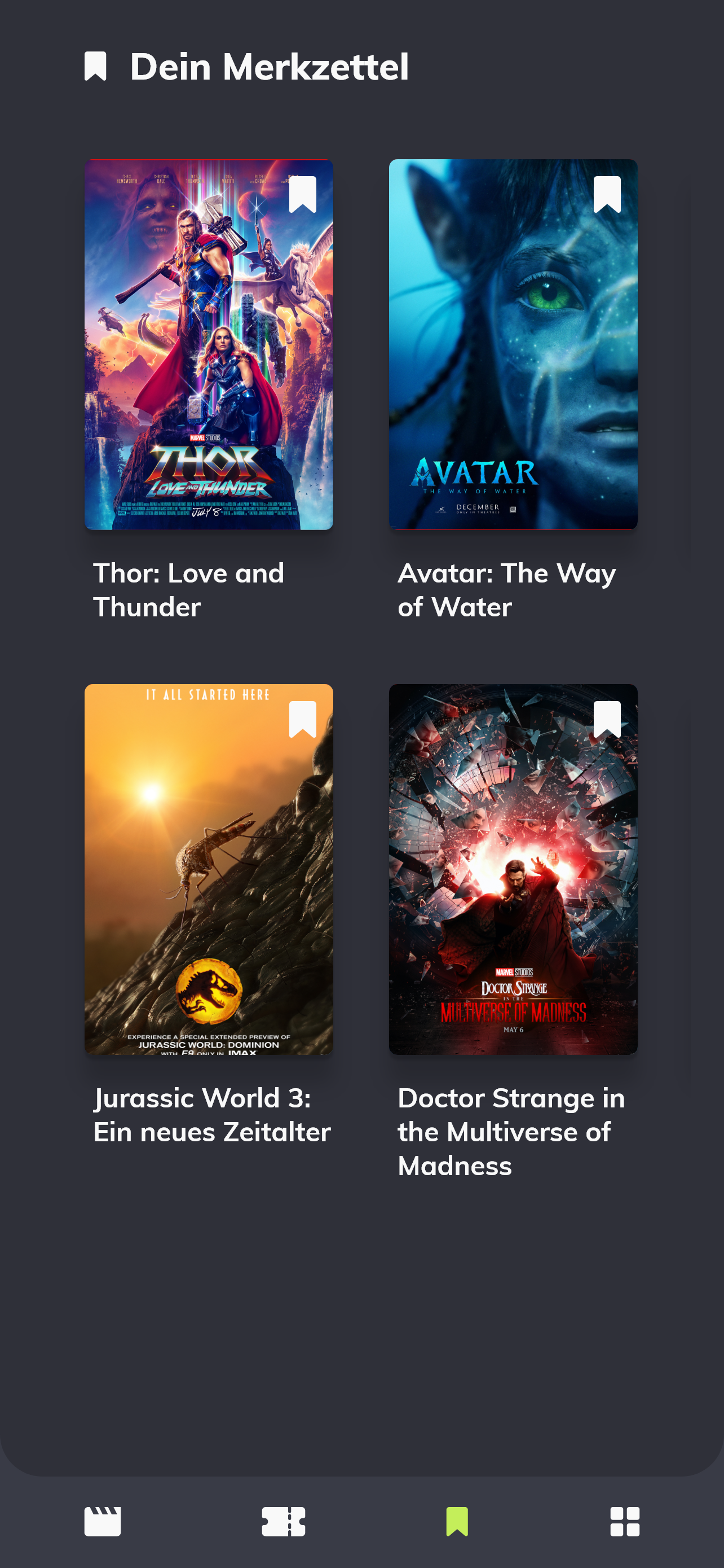 Über den Reiter „Favoriten“ gelangt man in die Ansicht der gespeicherten Filme. Hier kann man sich weiter informieren oder auch wie gehabt direkt Tickets kaufen. So behält man die Übersicht über die Filme, die man sich bald gern ansehen möchte.